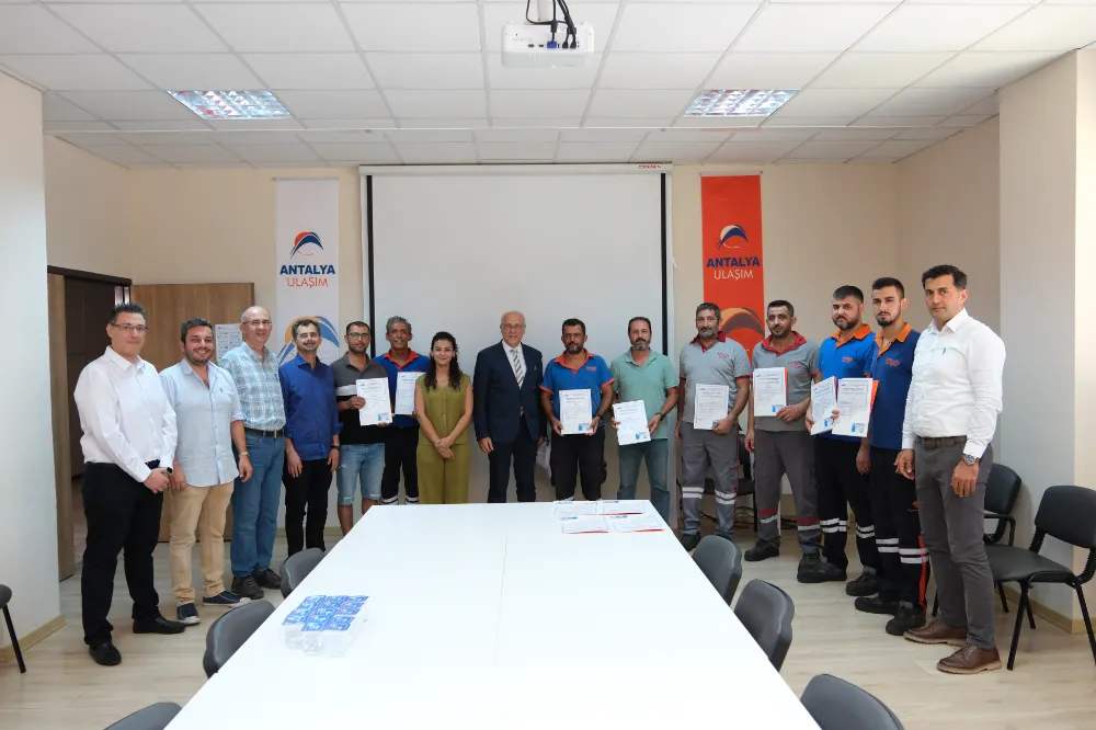 "Raylı Sistem Araçları Mekanik Bakım ve Onarımcısı" ile "Demiryolu Yol Yapım, Bakım ve Onarımcısı" olarak görev yapan 12 teknik personel, kurum içi eğitimlerini tamamladıktan sonra İstanbul Uygulamalı Gaz ve Enerji Teknolojileri Araştırma Mühendislik Sanayi ve Ticaret A.Ş. Eğitim ve Belgelendirme Şefliği (UGETAM) tarafından düzenlenen yazılı ve uygulamalı sınavlarda başarılı oldu. Eğitimleri tamamlayan teknik personele sertifikaları, Antalya Ulaşım A.Ş. Genel Müdürü Melih Dipova tarafından takdim edildi.