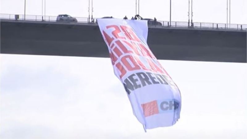 Dev pankartı 15 Temmuz Şehitler Köprüsü'nden sarkıtan CHP'li 3 vekil ile pankartı indirmeye gelen polisler arasında renkli diyaloglar da yaşandı. Astıkları “128 milyar dolar nerede?” pankartını ancak kendilerinin toplayabileceğini belirten CHP'li vekiller, bir müddet asılı tuttukları pankartı topladı. Birlikte selfie çeken CHP'li vekiller, daha sonra alandan ayrıldı.