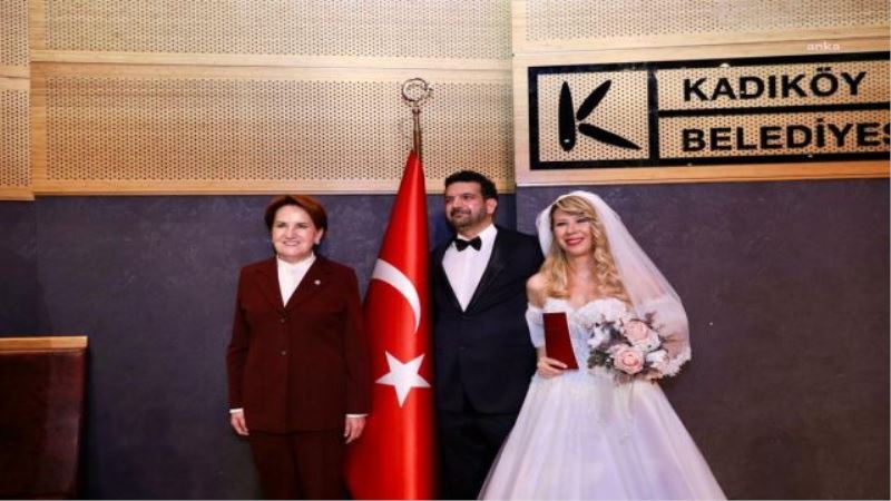 İYİ Parti Genel Başkanı Meral Akşener, Pelin Balyer - Ramazan Ölçer çiftinin İstanbul Kadıköy Evlendirme Dairesi'nde gerçekleştirilen nikah törenine katıldı. Çiftin nikah şahitliğini yapan Akşener, mutluluklar dileyerek evlilik cüzdanını geline verdi.