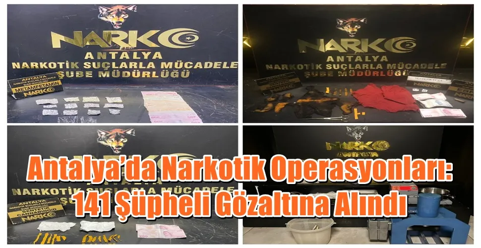 Antalya Emniyet Müdürlüğü ekipleri, son bir hafta içinde uyuşturucuya yönelik gerçekleştirdiği operasyonlarda 140 olaya müdahale etti. Operasyonlarda 141 şüpheli yakalanırken, 7 kişi tutuklandı.