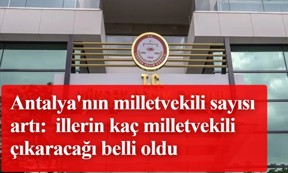 Karara göre Antalya’nın milletvekili sayısı 1 arttı. İstanbul’un Anadolu Yakası’nı kapsayan 1. seçim bölgesinde de milletvekili sayısı 1 yükseldi.