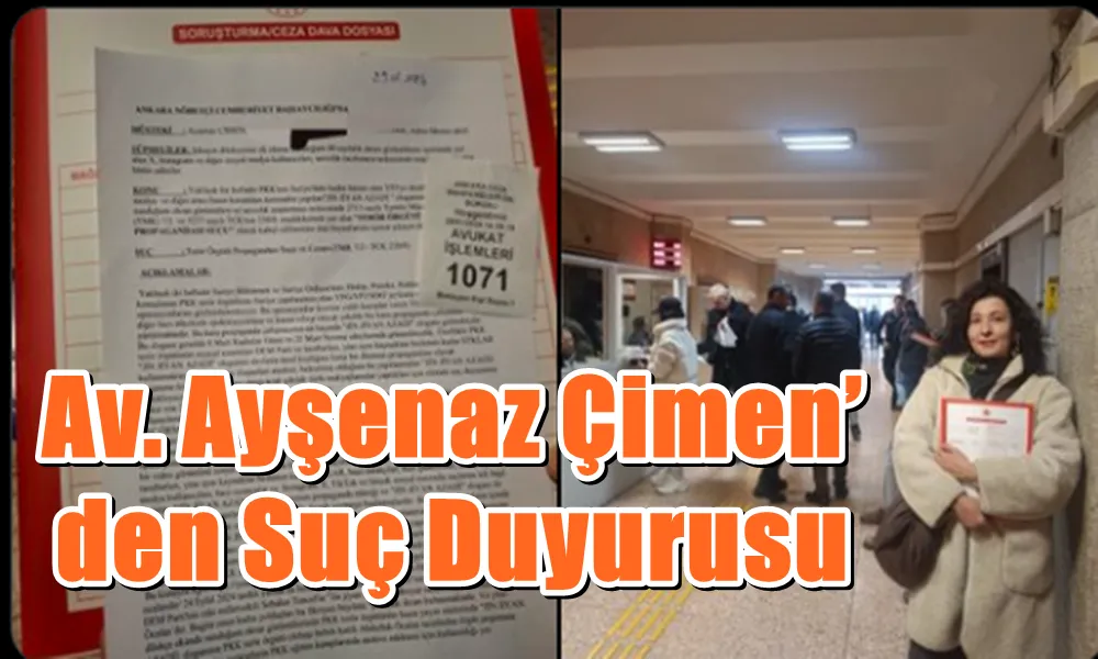 Avukat Ayşenaz Çimen, bölücü terör örgütünü övdüğü iddiasıyla “Jin Jiyan Azadi” sloganı hakkında Ankara Cumhuriyet Başsavcılığı Terör Suçları Bürosu’na suç duyurusunda bulunduğunu açıkladı.