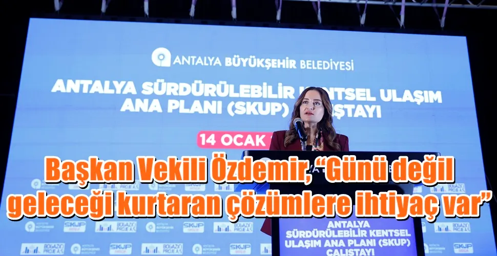 Antalya Büyükşehir Belediyesi ev sahipliğinde düzenlenen toplantının açılışında konuşan Başkan Vekili Büşra Özdemir, “Hedefimiz; özel araç kullanımının dengeli biçimde yönetildiği, toplu taşımanın güçlendirildiği, yürüyüş yolları ve bisiklet ulaşımının, çevre dostu araçların gerçek bir alternatif haline geldiği, farklı ulaşım türlerinin birbirini tamamladığı bir Antalya ulaşım sistemi kurmaktır” dedi.