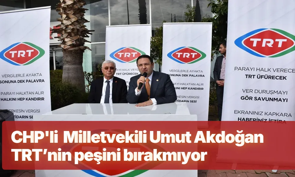 CHP Antalya İl Başkanlığı’nın organizasyonuyla Muratpaşa’daki TRT Antalya stüdyoları önünde konuşan Akdoğan, TRT’nin kamu yayıncılığı ilkesinden uzaklaştığını savunarak, “TRT neleri veriyor, neleri vermiyor? Türkiye’de gıda enflasyonu yüzde 36 ama TRT bunu vermiyor. Çiftçiyi, seracıyı, turizmcinin halini, emekliyi vermiyor” dedi.