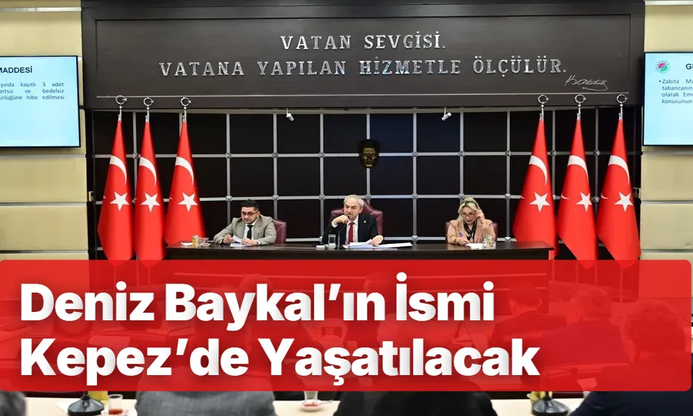 Şubat meclisine önerge olarak sunulan Cumhuriyet Halk Partisi 4. Genel Başkanı, Maliye Bakanı, Enerji ve Tabi Kaynaklar Bakanı, Dışişleri Bakanı ve Meclis Başkanlığı görevlerinde bulunan, 2023 yılında hayatını kaybeden Deniz Baykal’ın isminin Kepez’deki bir bulvar, spor tesisi veya kültür merkezine verilmesi oy birliğiyle kabul edildi.
