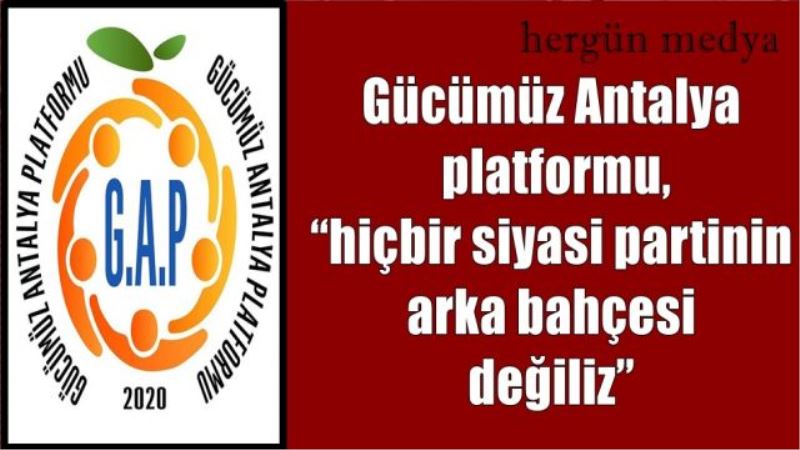 Merkez Antalya’da bulunan gönüllük esasına göre üyelik ile her gecen gün üye sayısını çoğaltan Gücümüz Antalya Platformu sözcülerinden Mustafa Duran, Gücümüz Antalya Polatformu hakkında şu bilgileri verdi, “Yaklaşık bir yılımızı doldurmak üzereyiz. Çok kısa süre olmasına rağmen üyelerimizin özverili çalışmaları neticesinde üye sayımız Bine ulaşırken toplum nezdinde de kabul görmeye başladık .