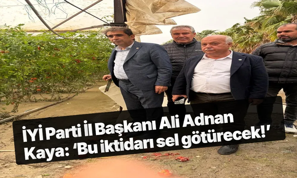 İktidarın Antalya ve İlçelerinde son bir ayda yaşanan sel ve hortum felaketlerinden sonra gerekli tedbirleri almakta geciktiğini belirten İYİ Parti Antalya İl Başkanı Ali Adnan Kaya; ‘’Gerekli tedbirler alınmazsa, vatandaşlarımıza yeterli destekler sağlanmazsa yapılacak ilk seçimde Antalya çiftçisinin sandıkta sel olup akacağını, iktidarın da bu selle beraber gideceğini hep beraber göreceğiz.’’ dedi.