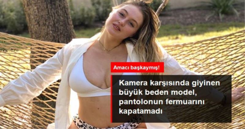 Videoda bir kot pantolon giymeye çalışan 30 yaşındaki model, bir türlü fermuarı kapatamıyor.