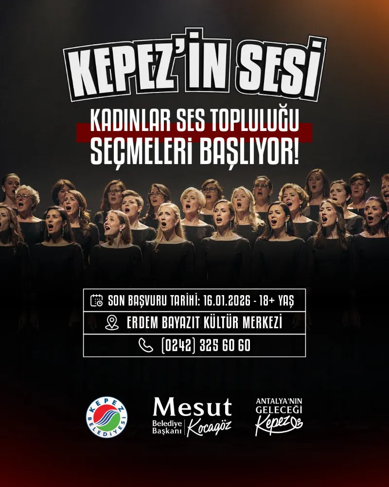 Kepez Belediyesi, kadınların sanatsal üretimde daha aktif rol almasını sağlamak amacıyla yeni bir kültür-sanat projesini hayata geçiriyor. Müziğe ilgi duyan kadınları bir araya getirecek olan Kepez’in Sesi Kadınlar Ses Topluluğu’nun, başvuruları başladı. Kadınların gücünü, sesini ve çok sesliliğini Kepez’de buluşturmayı hedefleyen proje; sahneye çıkmak, birlikte üretmek ve müziğin bir parçası olmak isteyen tüm kadınları bekliyor. Müzik alanında yetenekli ya da bu alana ilgi duyan kadınlar, seçmelere katılarak toplulukta yer alma şansı yakalayacak. 18 yaş ve üzeri kadınların başvurabileceği seçmeler için son başvuru tarihi 16 Ocak olarak belirlendi. Seçmeler ve başvurularla ilgili detaylı bilgiye Erdem Bayazıt Kültür Merkezi’nden ya da (0242) 325 6060 numaralı telefon hattından ulaşılabilecek.