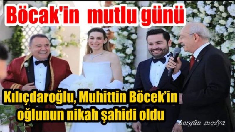 Belek’teki bir otelin stadyumunda açık havada düzenlenen Nikah törenine, CHP Genel Başkanı Kemal Kılıçdaroğlu’nun yanı sıra İstanbul Büyükşehir Belediye Başkanı Ekrem İmamoğlu, Ankara Büyükşehir Belediye Başkanı Mansur Yavaş, diğer CHP’li belediye başkanları ile milletvekilleri ve çok sayıda davetli katıldı. Sağ bacağındaki kırık nedeniyle alçı takılı olan Muhittin Böcek, doktordan 3 saatlik özel izin alıp bacağındaki alçıyı çıkartarak törene katıldı.