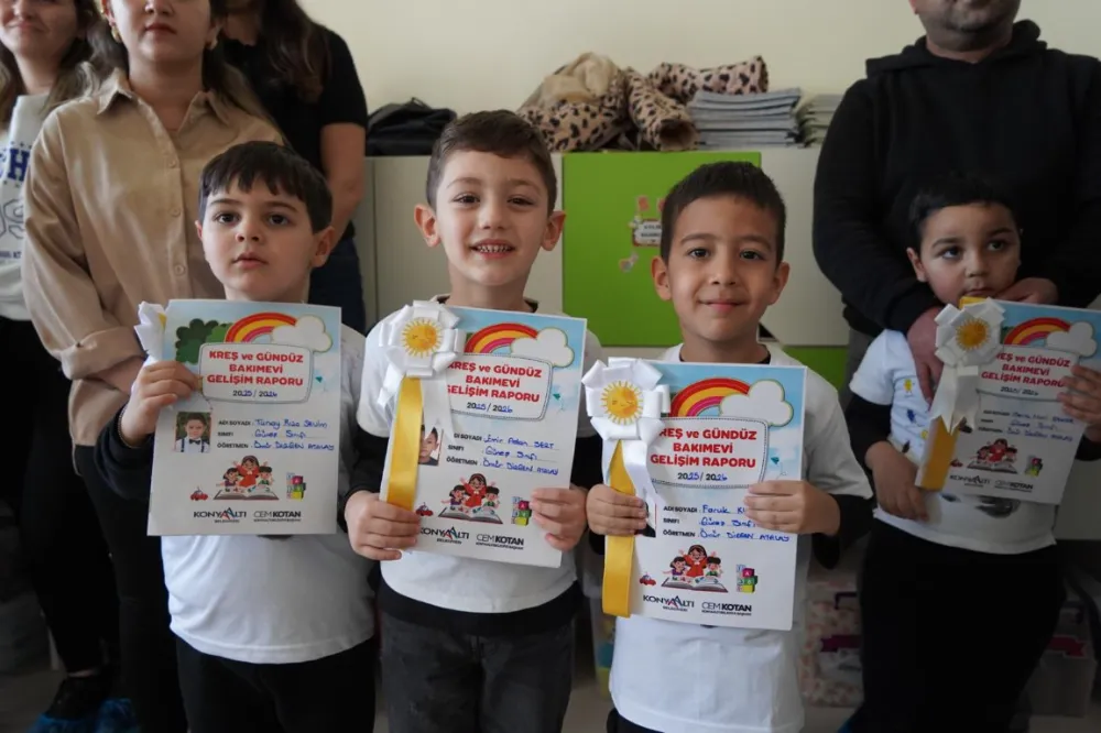 Kreşlerdeki eğitim seviyesini her zaman üst seviyede tuttuklarını vurgulayan Konyaaltı Belediye Başkanı Cem Kotan, “Konyaaltı Belediyesi olarak çocuklarımızın eğitim hayatlarının en başından itibaren nitelikli, güvenli ve sevgi dolu bir ortamda gelişim göstermelerini çok önemsiyoruz. Kreşlerimizde eğitim alan miniklerimizin karne heyecanına ortak olmak bizler için büyük bir mutluluk. Çocuklarımızın gözlerindeki umut ve sevinç, geleceğe dair inancımızı daha da güçlendiriyor. Bu süreçte emek veren tüm öğretmenlerimize ve çocuklarımızın her an yanında olan ailelerimize teşekkür ediyorum. Tüm öğrenci, öğretmen ve velilerimizin sağlıklı ve mutlu bir yarıyıl tatili geçirmelerini diliyorum” diye konuştu.