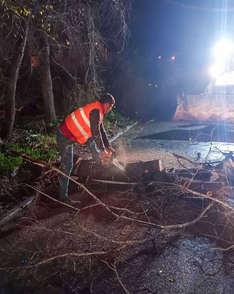 açıklamada; yollara devrilen ağaçların kaldırıldığı, ulaşımı aksatan enkazın temizlendiği ve