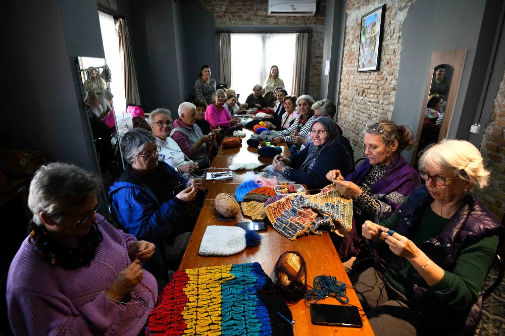 Bir tekstil mağazası tarafından bağışlanan ipler, Yaşlı Evi üyelerinin elinde yeniden hayat buluyor.