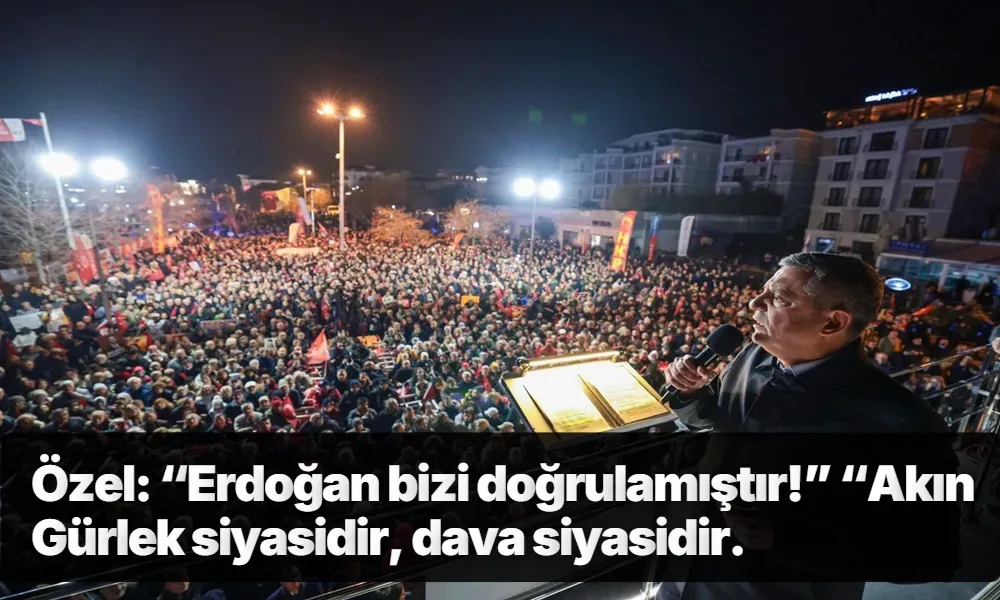 Özel, 18 Mart’ı 19 Mart’a bağlayan gece için geniş katılımlı bir meydan buluşması çağrısı yaptı. “Bir yıl önce başladığımız mücadelenin yıldönümünde meydanda olalım” diyen Özel, “Biz haklıyız, biz kazanacağız” sözleriyle konuşmasını tamamladı.