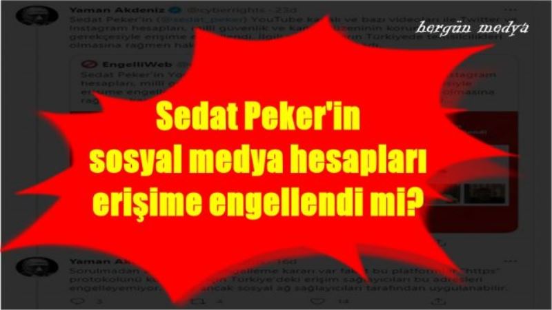 İletişim Hukuku uzmanı Prof. Dr. Yaman Akdeniz, Twitter hesabından, ''Sedat Peker’in YouTube kanalı ve bazı videoları ile Twitter ve Instagram hesapları, millî güvenlik ve kamu düzeninin korunması gerekçesiyle erişime engellendi. İlgili platformların Türkiyede temsilcilikleri olmasına rağmen hakimlik kararı henüz uygulanmadı'' paylaşımı yaptı.