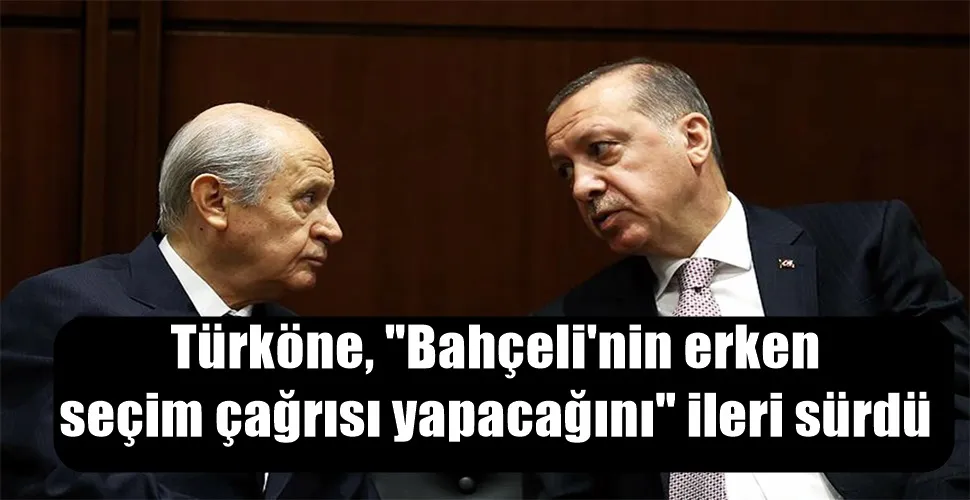 Türköne, "Benim öngörüm şöyle; Erdoğan çözüm sürecini baltalayacak, yani çözüm sürecinin gelişmesini engelleyecek. Bahçeli de bunun üzerine Türkiye'yi erken seçime götürecek" iddiasında bulundu.