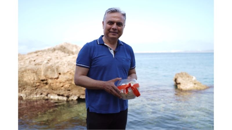 Başkan Uysal, Muratpaşalıların dileklerini Akdeniz’in mavi sularına bırakırken, dileklerin yazılı olduğu