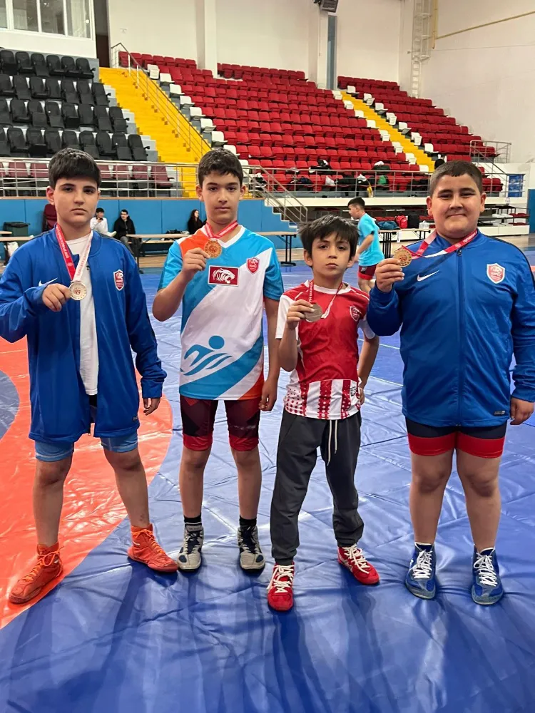 Türkiye Güreş Federasyonu Küçükler Güreş Türkiye Grup Birinciliği müsabakalarında, Kepez Belediyespor Kulübü’nün pehlivanları büyük bir başarıya imza attı.Karaman’da düzenlenen müsabakalarda Kepezli sporcular 2 altın ve 2 gümüş madalya kazandı. Samet Akdan 75 kiloda, Miraç Ali Toprak 48 kiloda altın madalya, 30 kiloda yarışan Kadir Mert ile 57 kilodaki Yusuf Gep gümüş madalya almaya hak kazandı. Tamamı 2013 doğumlu olan küçük güreşçiler, kürsüye çıkmış olmanın gururunu yaşadı. Kepez Belediyesi olarak geleceğin şampiyonlarını yetiştirmeye devam edeceklerini belirten antrenör Meral Kaya, emeği geçen velilere teşekkür etti.