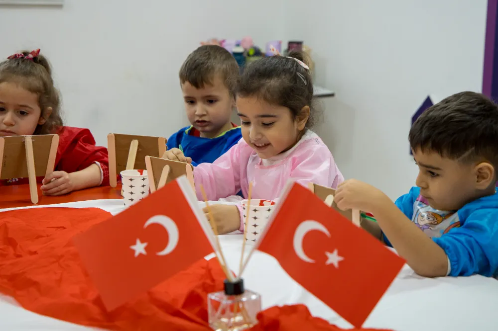 süslenirken, çeşitli el işi ve görsel etkinliklerle öğrencilere bayrak sevgisi ve milli değer