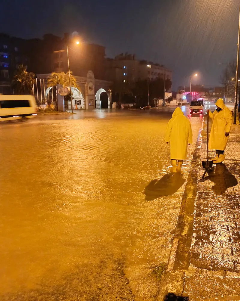 Temizlik İşleri Müdürlüğü ile Zabıta Müdürlüğü ekipleri; yağış nedeniyle oluşan su