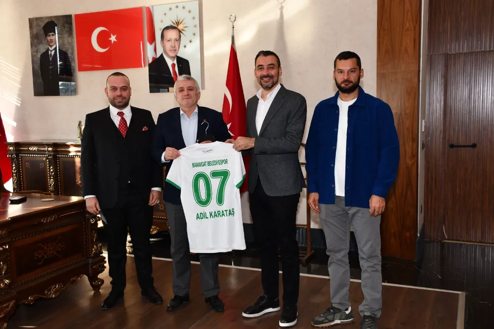 Çiçek, Manavgat Belediyespor 2. Başkanı Emre Suntur ve Kulüp Genel Menajeri Alihan Ünal