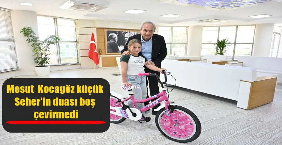 Başkan Kocagöz, “Ben cezaevindeyken sen bana dua ettin, ben çıktım” diyerek, küçük kıza pembe bisiklet hediye etti.