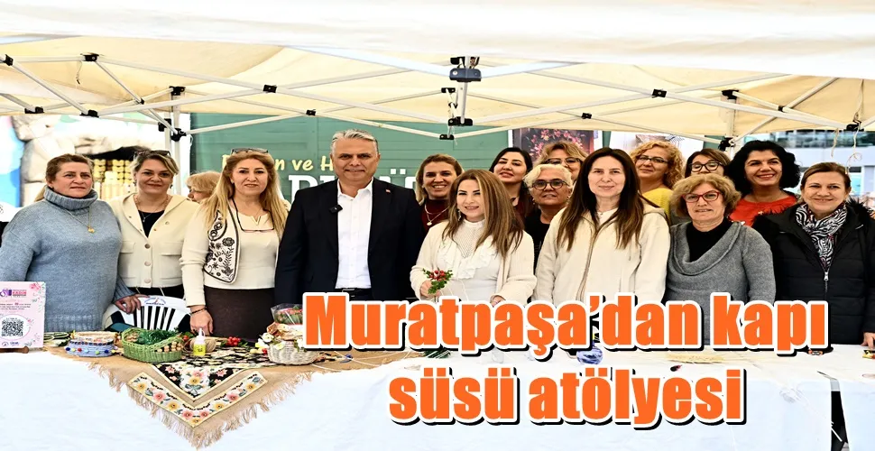 Atölyeye katılan Muratpaşa Belediye Başkanı Ümit Uysal da kadınlarla birlikte kapı süsü yapmayı
