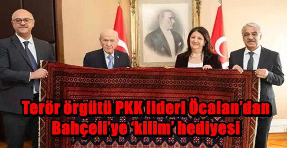 Milliyetçi Hareket Partisi (Milliyetçi Hareket Partisi) Genel Başkanı Devlet Bahçeli, 12 Aralık 2025’te DEM Partiheyetinin Meclis’te gerçekleştirdiği ziyaret sırasında, terör örgütü PKK lideri Abdullah Öcalan’ın Şanlıurfa’da özel olarak dokutturduğu bir kilimin kendilerine hediye edildiğini açıkladı.