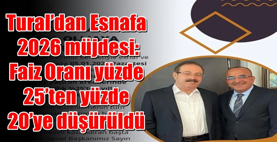 Yapılan açıklamaya göre, 05 Ocak 2026 Pazartesi tarihinden itibaren geçerli olmak üzere; esnaf ve sanatkârların kullanacağı kredilerde yıllık faiz oranı yüzde 25’ten yüzde 20’ye, aylık faiz oranı ise yüzde 1,66’ya indirildi.